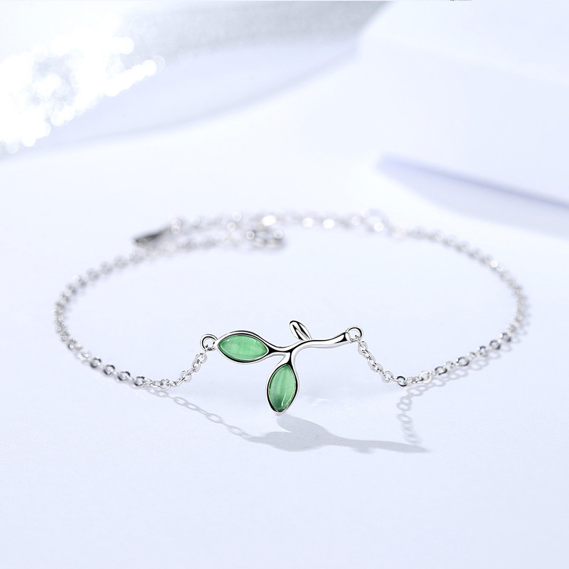 Sterling silver leaf bracelet Female niche design best friend forest student ins bracelet Cold wind simple pair of hand ornaments