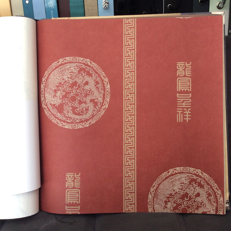 Neo-classical red dragon phoenix auspicious atmospheric pattern wallpaper modern Chinese living room study wallpaper background non-woven fabric