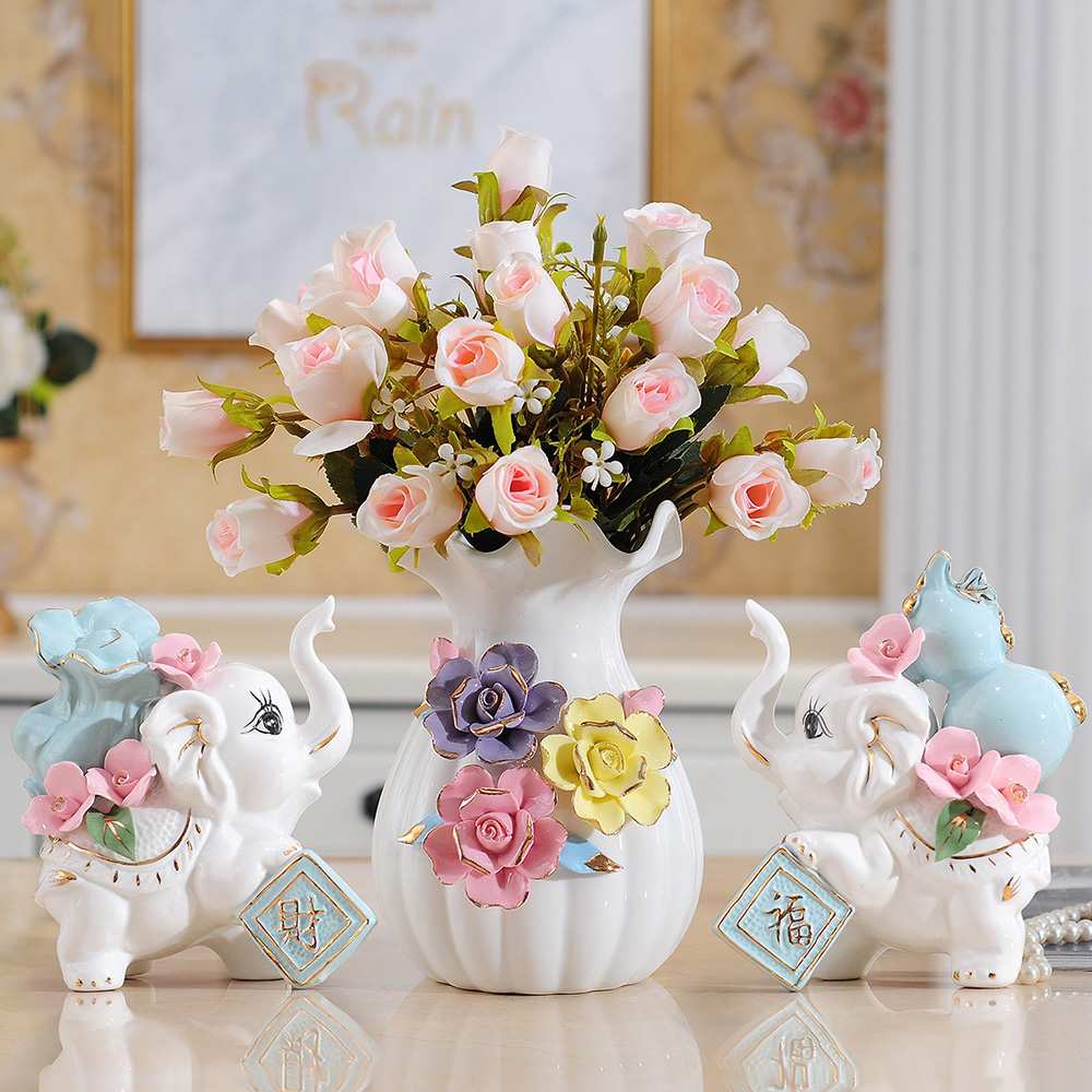 Boutique Elephant Gourd Cabbage Wealth Elephant Emerald Elephant Vase Roses (Top 50 Special Large Fortune Elephant Vase Rose Medium Elephant Pair of Vases 1 Rose Vase Pink Rose Roll