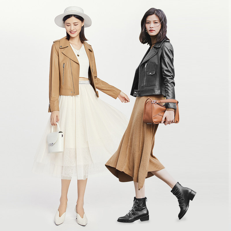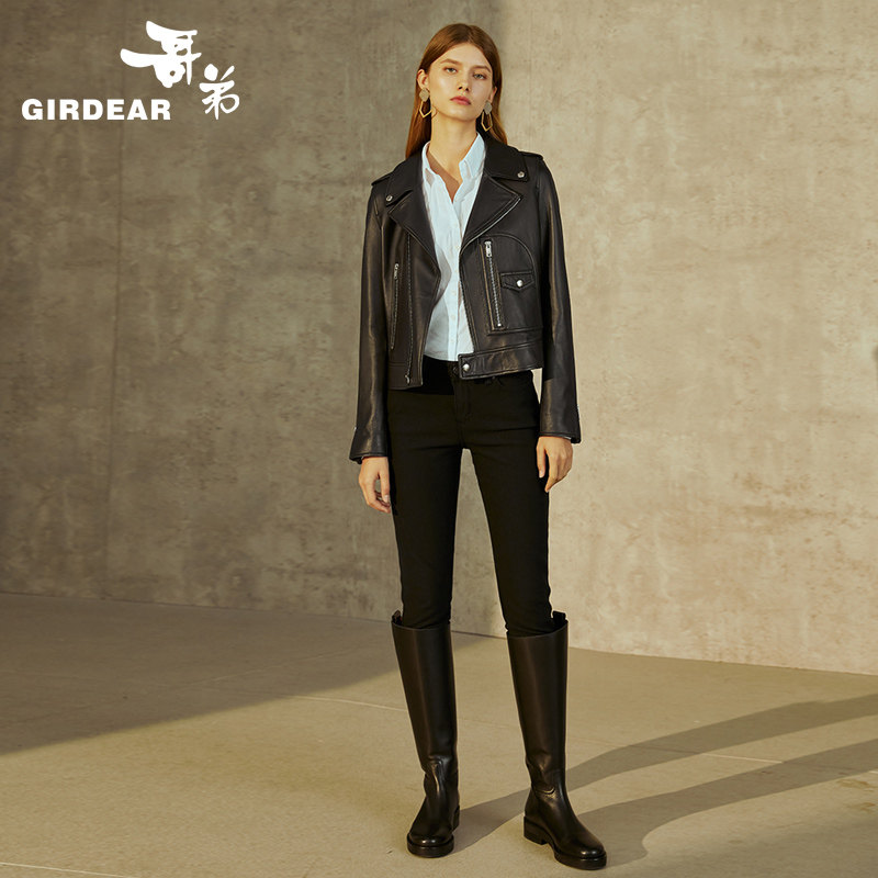 Brother 2021 new spring and summer leather motorcycle tide short sheepskin jacket jacket women A400158
