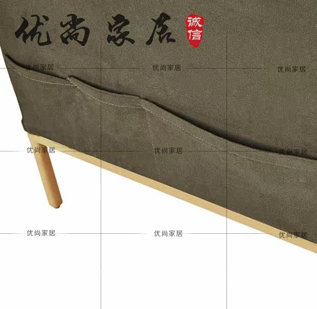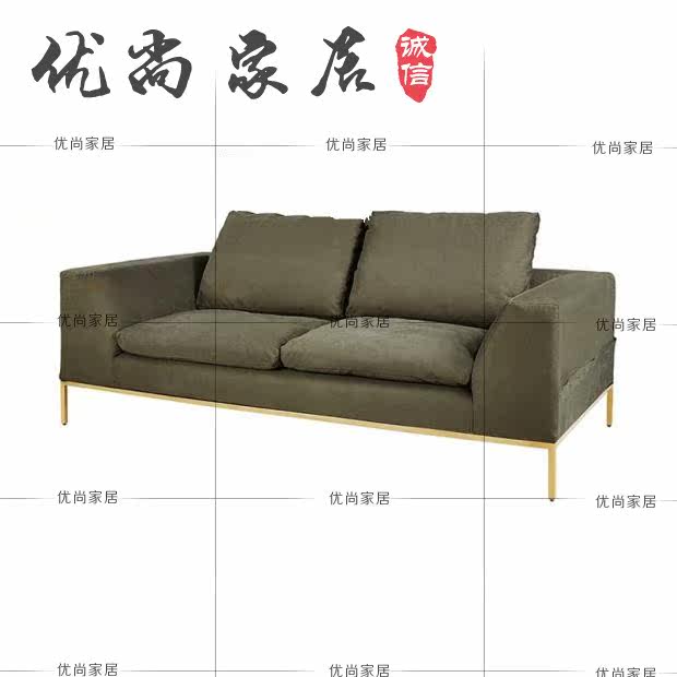 Modern minimalist casual stainless steel metal double three-person homestay living room beauty salon army green fabric sofa