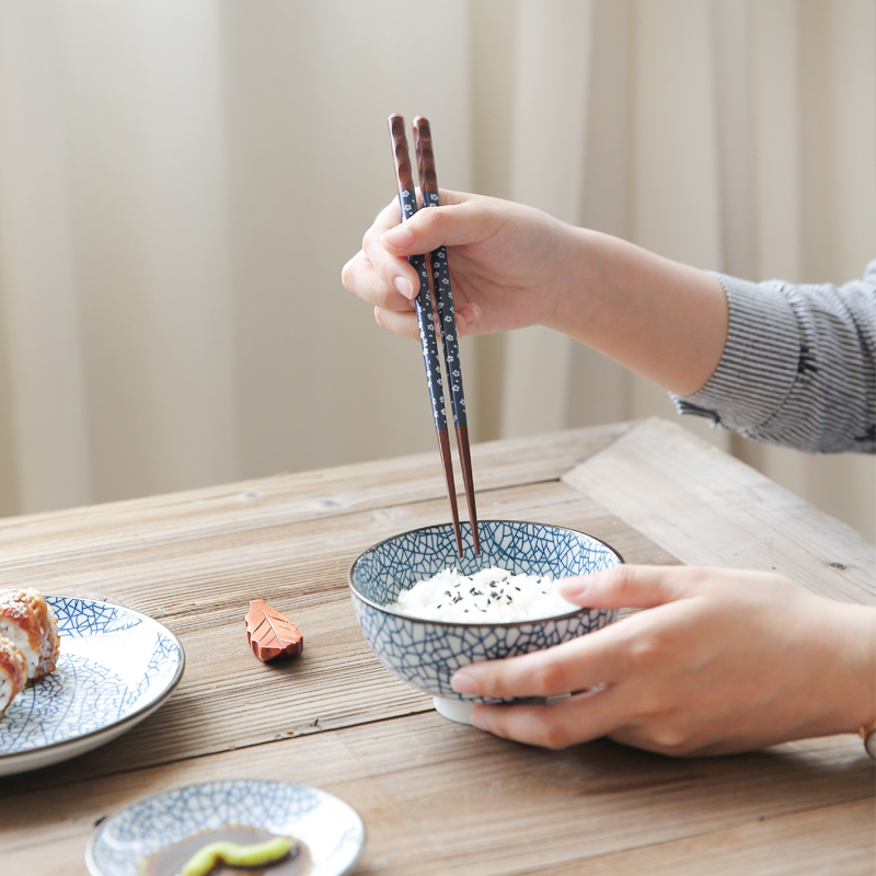 Japan-style Red Blue Cherry Blossom Hand Carved Turtle Chia Cherry Blossom Pointed Chopstick Day Style Home Chopsticks Flower Style Couple Pair of chopstick sushi chopsticks