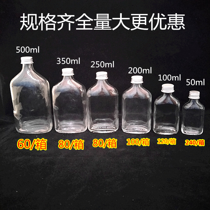 Glass Beverage Bottle 250ml Wine Bottle Creative Aluminum Cover Packaging Bottle Transparent Flat Bottle Dins Juice Cups