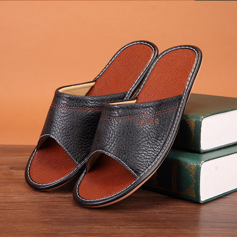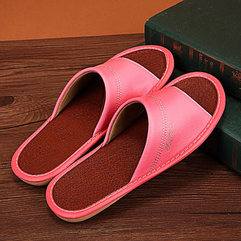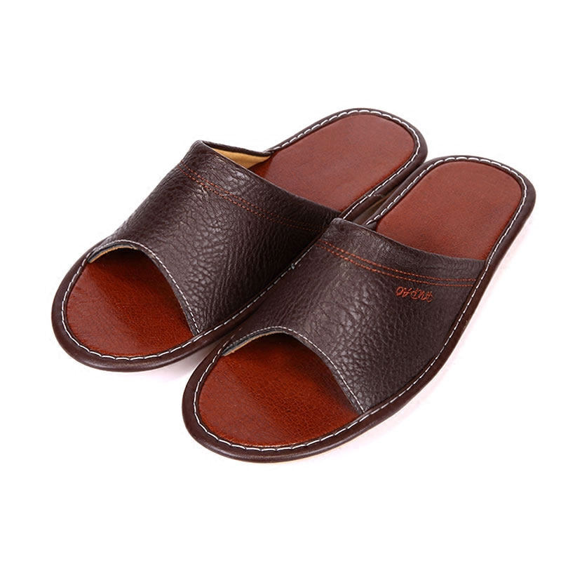 Home Summer Non-slip Leather Slippers Indoor Wood Flooring Cool Leather Slippers For Men And Women Household Summer Breathable Comfort Leather Tug