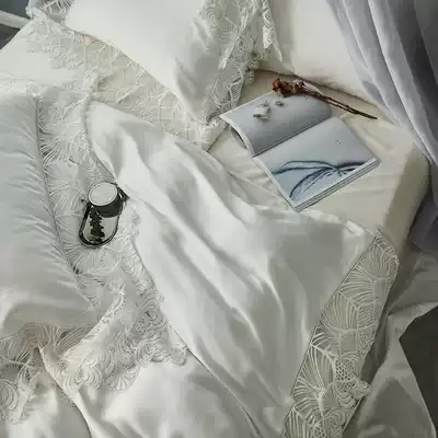 ZOSER Austrian French lace big lace double-sided Tencel four-piece nude sleeping silky high-end bedding