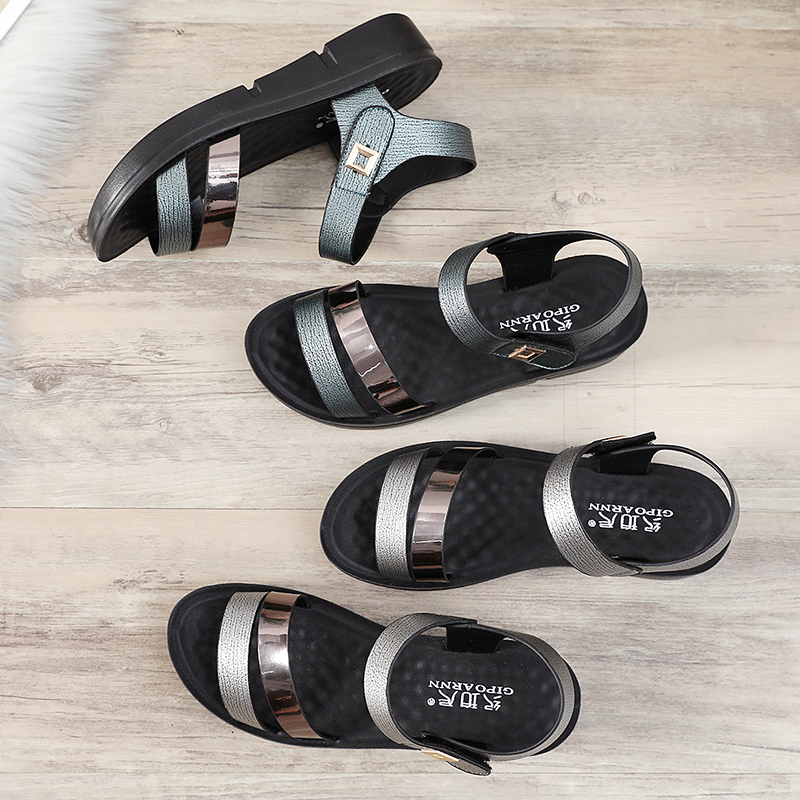 New Summer Flat Bottom 2022 Fashion Middle Aged Soft Bottom Women's Shoes Slopes Heel Lady 100 Lap Thick Bottom With Mom Sandals