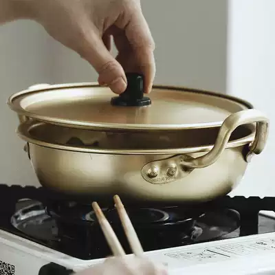With handle Yellow aluminum small bowl Yellow aluminum pot deep small yellow aluminum pot deep medium yellow aluminum pot deep large yellow aluminum pot shallow small yellow aluminum pot shallow large yellow aluminum pot deep small food bowl Yellow aluminum pot deep medium