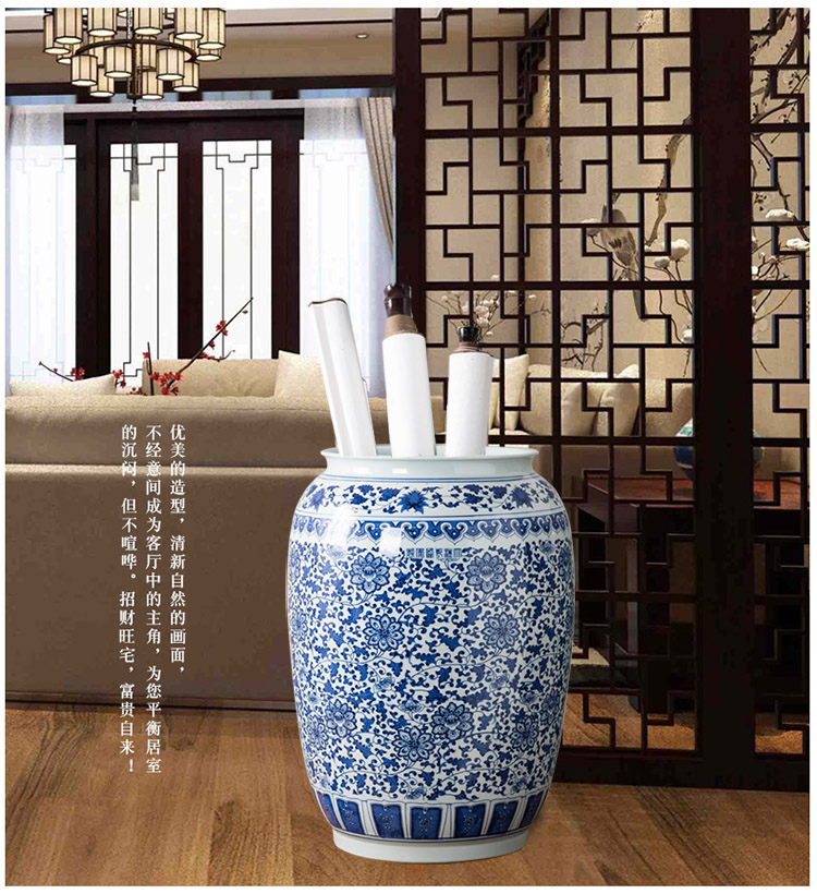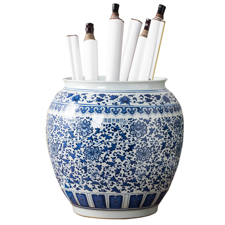 Jingdezhen Ceramic painting and calligraphy containing cylinder large number of green flower porcelain calligraphy and painting scroll cylinder book room arrow cylinder swing piece retro senior