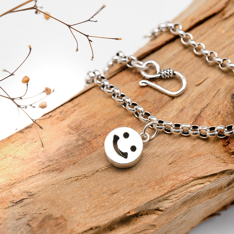 925 pure silver pedicure with a smile face male and female retro Thai silver Fashion Japan-ROK Edition student 100 hitch to send a friend to a couple