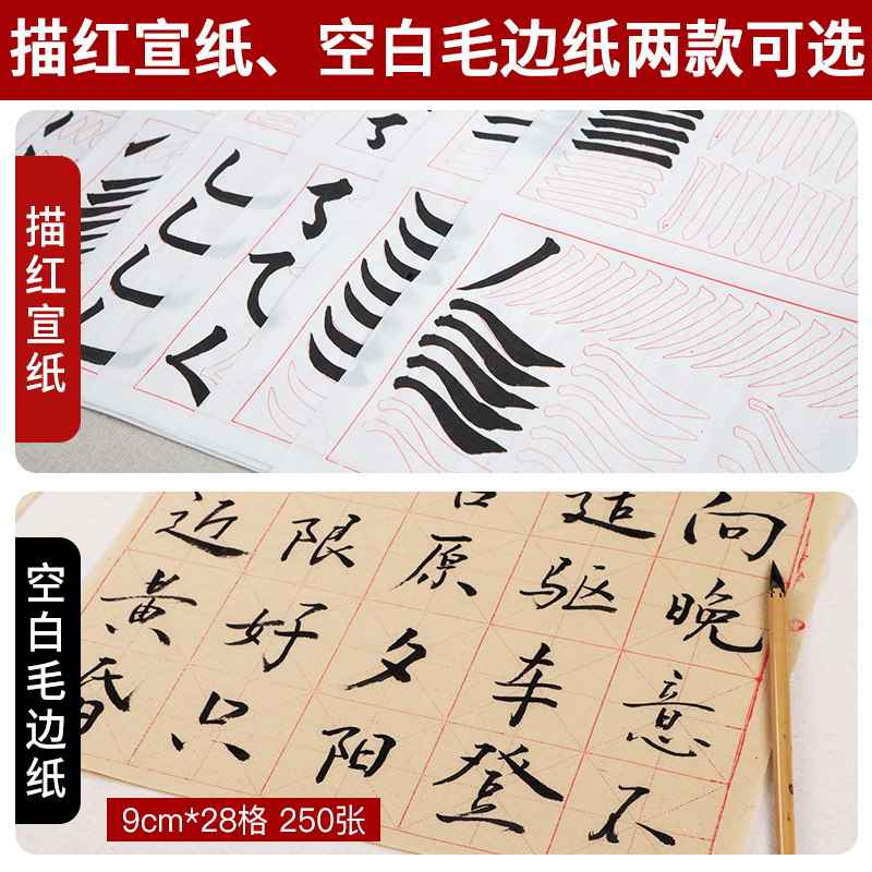 Yan Zhenqing Yan body red brush paper 80 sheets(buy 2 get 1 free for a total of 240 sheets) Ouyang Xun European body red rice paper (stroke radical group of 90 sheets)(buy 2 get 1 free for a total of 270 sheets)