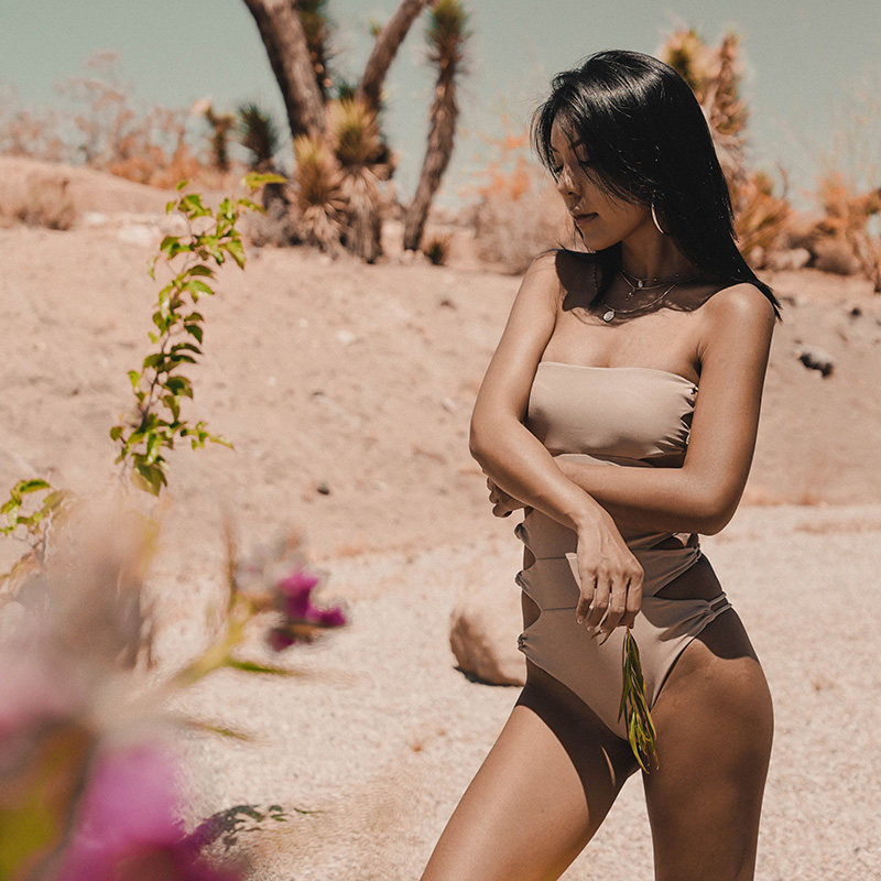 Ocean Mystery new seaside holiday one-piece swimsuit women belly thin back khaki swimwear
