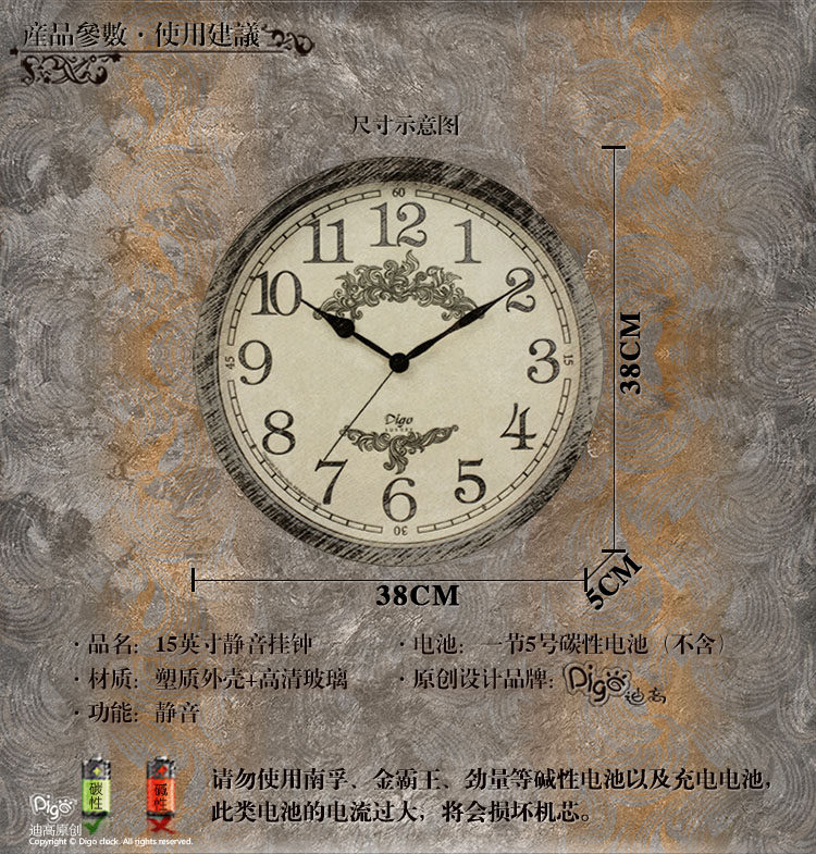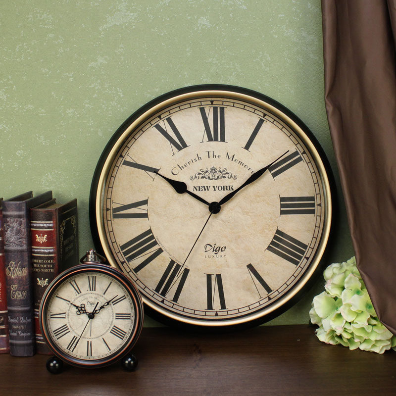 American country retro wall clock Living room light luxury atmospheric art clock Personality creative fashion wall clock