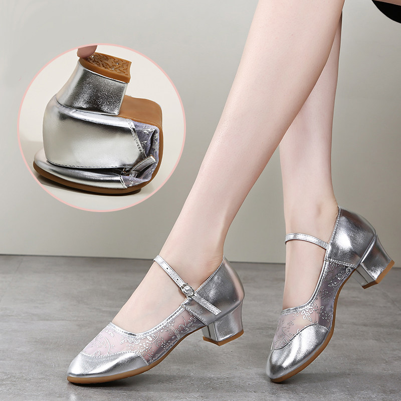 Elang Butterfly Summer Square Dance Shoes Middle Heel Soft Bottom Dance Shoes Women Adults Mesh Yarn Dancing Shoes Women Shoes Golden Silver-Taobao