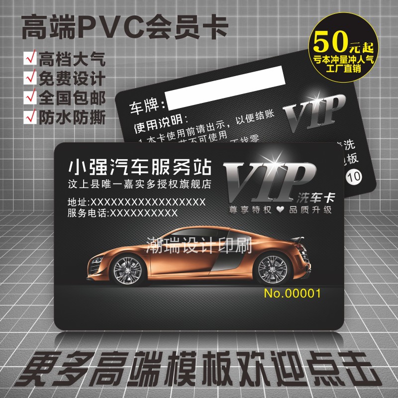 Car wash card making custom punching high-end pvc plastic vip membership card car beauty repair shop business card
