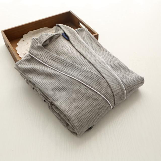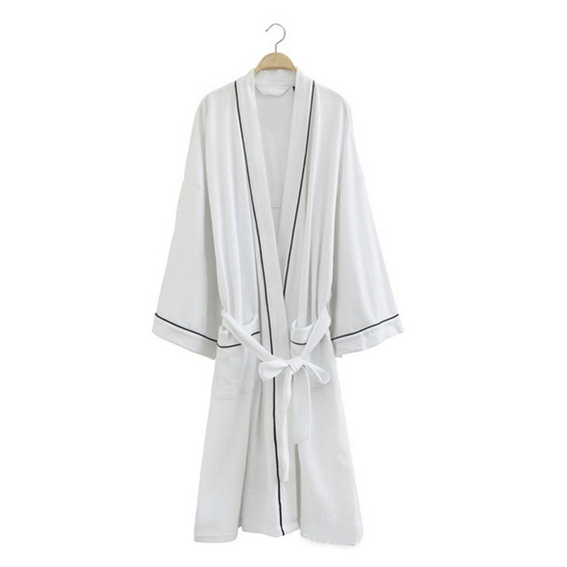 European and American pajamas spring and summer long-sleeved cotton bathrobe male sexy couple long version nightgown women's thin hotel bathrobe large size