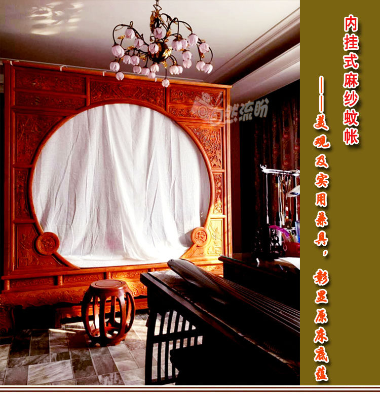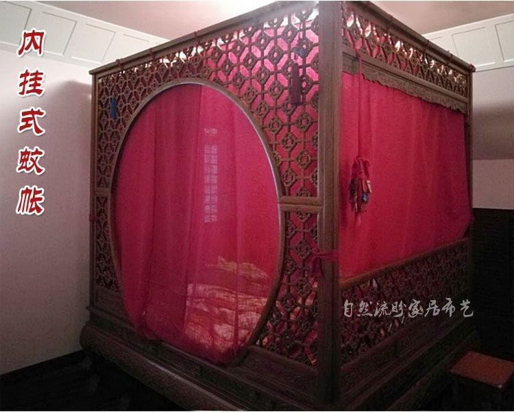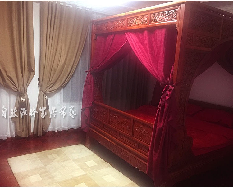 Chinese Ming and Qing antique double moon hole bed Rosewood classical shelf bed yarn Festive wedding wedding mosquito net bed curtain yarn