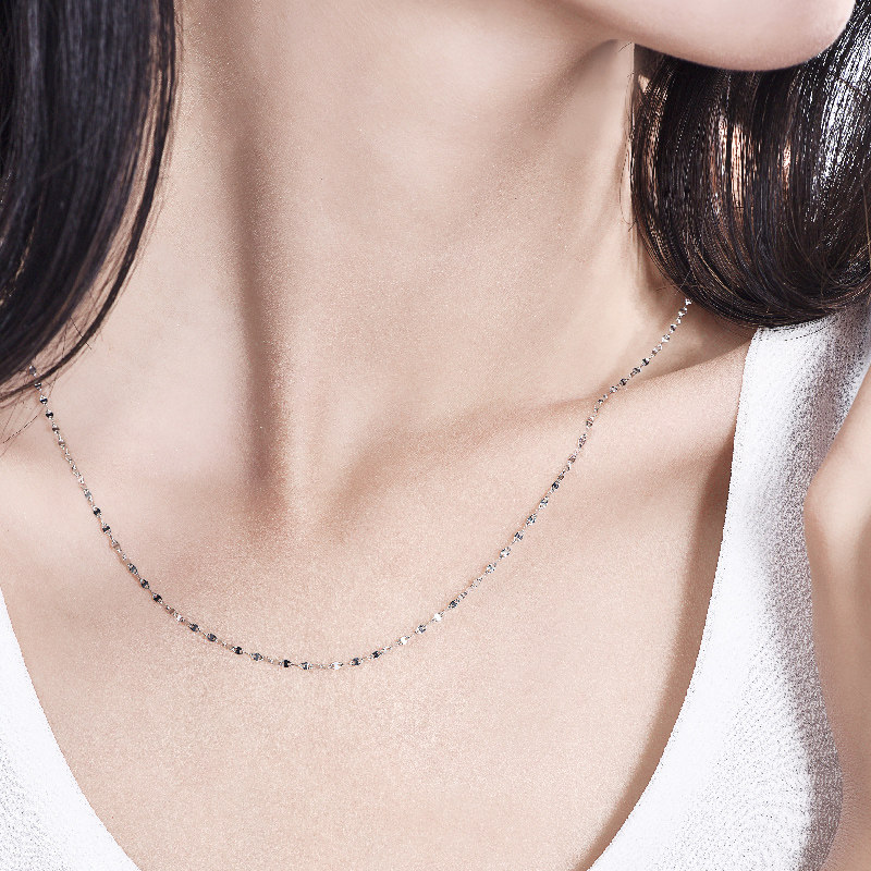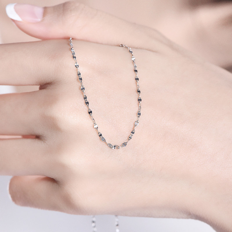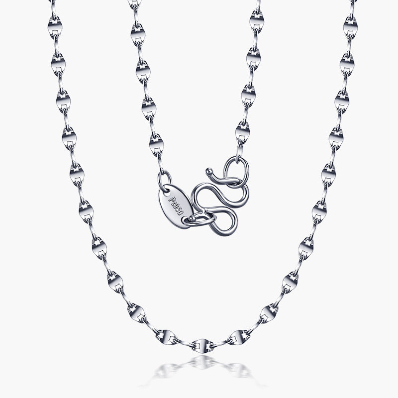 Full City Hot Love pt950 Platinum Necklace Woman Platinum Brief White Gold Thin Chain Sub pt950 Tile Lock Bone Chain