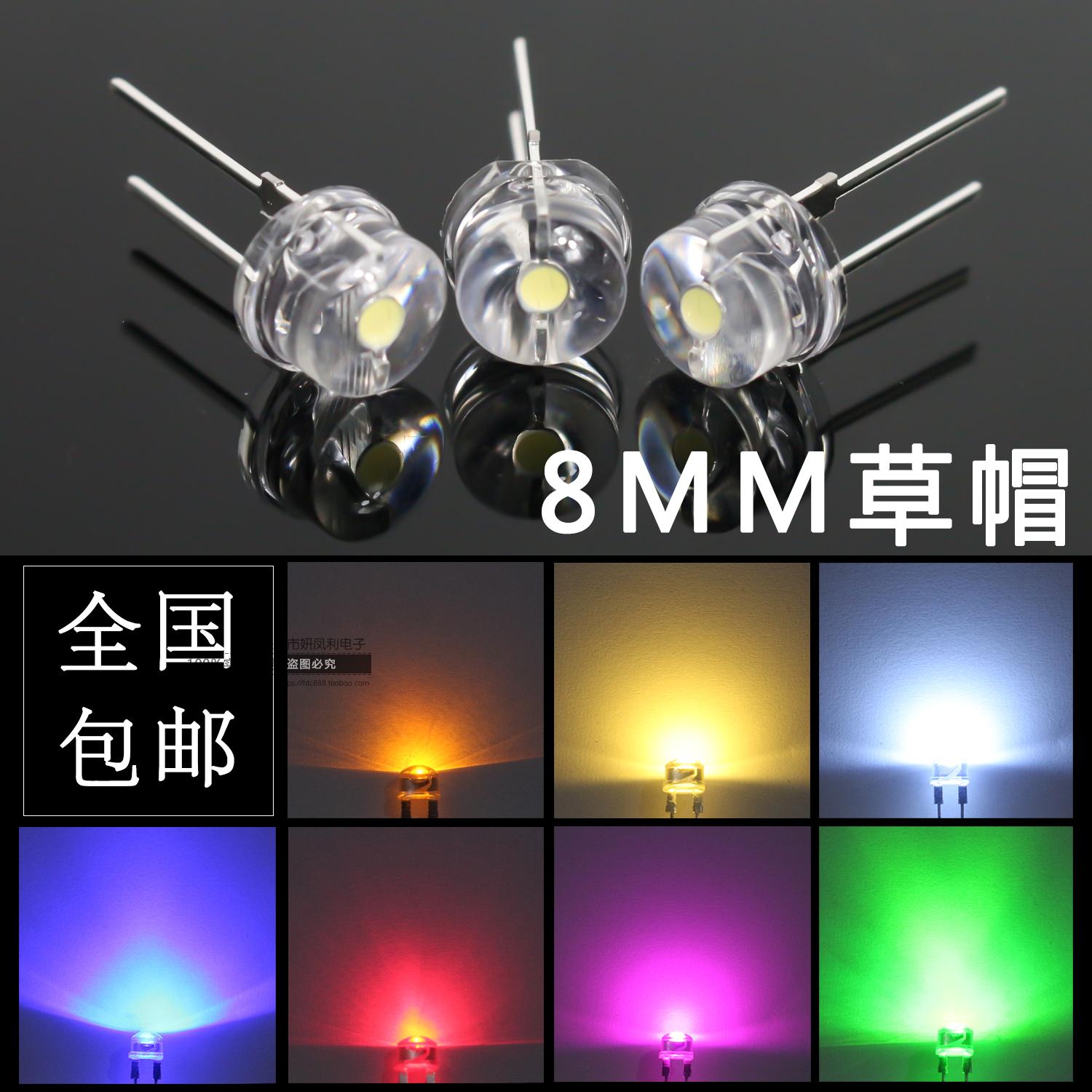 HIGHLIGHT FLASHLIGHT LED LAMP BEADS 8MM LIGHT EMITTING DIODE 0.5W WHITE LIGHT F8 STRAW HAT WHITE LIGHT F8 straight into white