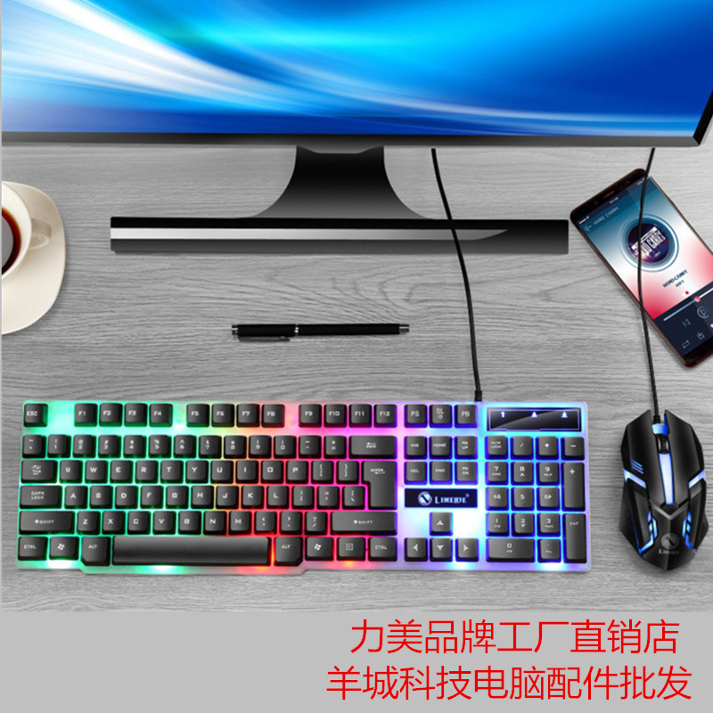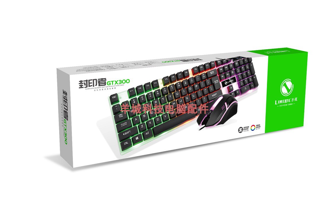 Limei GTX300 wired USB backlit keyboard mouse floating button manipulator sense game lighting set