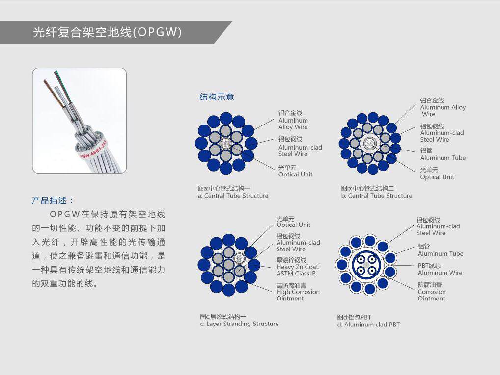 OPGW composite overhead fiber OPGW-24B1 OPGW-12B1-80 fiber