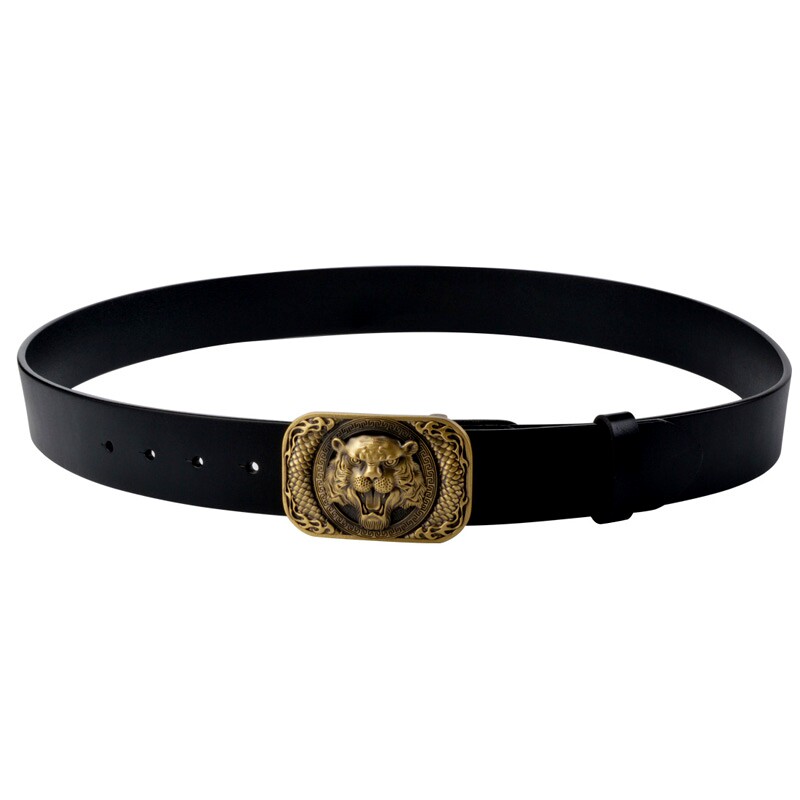 Retro frontal dragon black with body retro old tiger head black with body Kirin buckle black with solid tap deep brown belt body