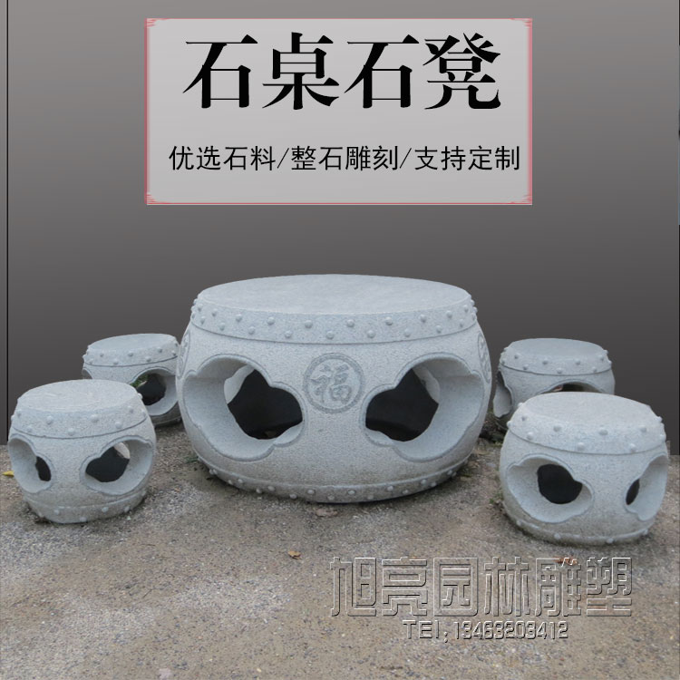 Stone Carving Stone Table Stone Bench Domestic Classical Round Table Courtyard Garden Villa Tea Table Outdoor Chinese Classical Large Drum Stone Table