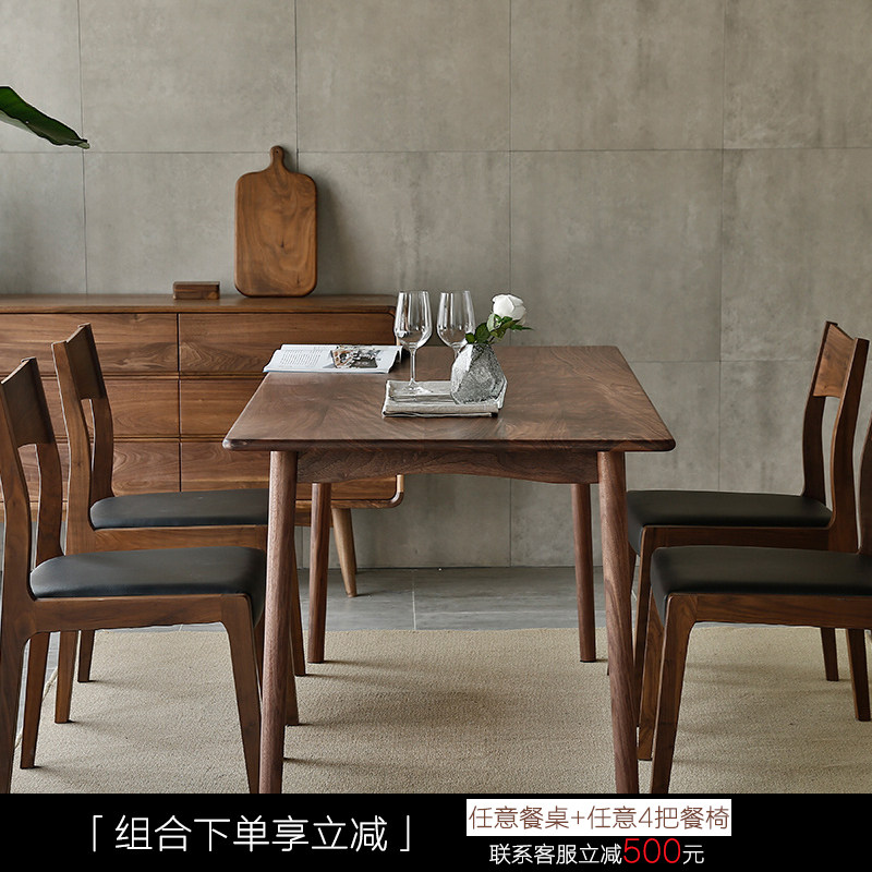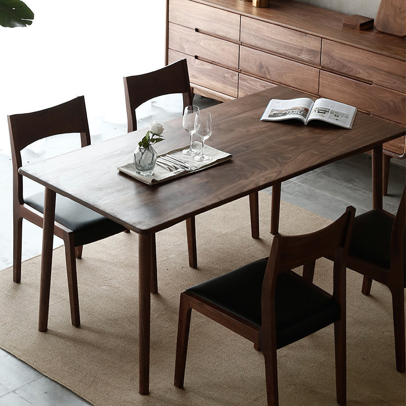 Nordic Black Walnuts Wood Table Oak Wood Home Small Family Type Day Style Expression Furniture Rectangular Solid Wood Round Dining Table
