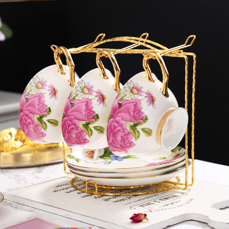 Peony Flowers Bone China Porcelain Coffee Cup Suit Home Ceramic British Afternoon Tea Tea Set Small Lavish Minima Teapot Cup