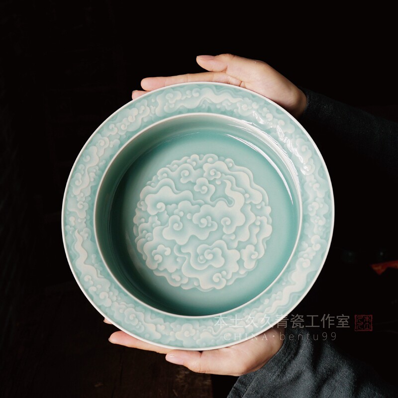 Wang Chuanbin pure artisanal Xiangyun Sanfoot washed Longquan porcelain Pink powder Qingdaocha Tea Washing room Collection High-end folding along the washing