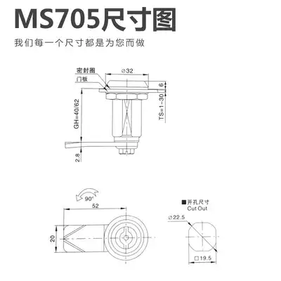 Zhuoguan distribution box turn tongue lock triangle key lock MS705-40-62 extended distribution cabinet box door lock MS406