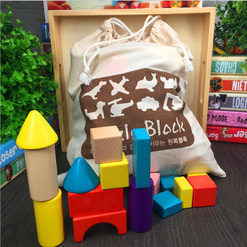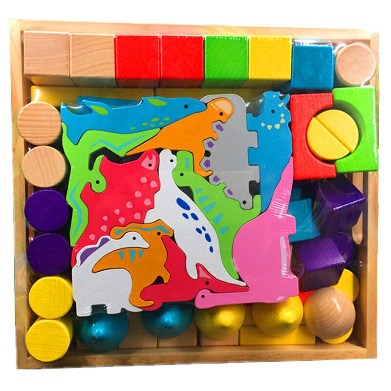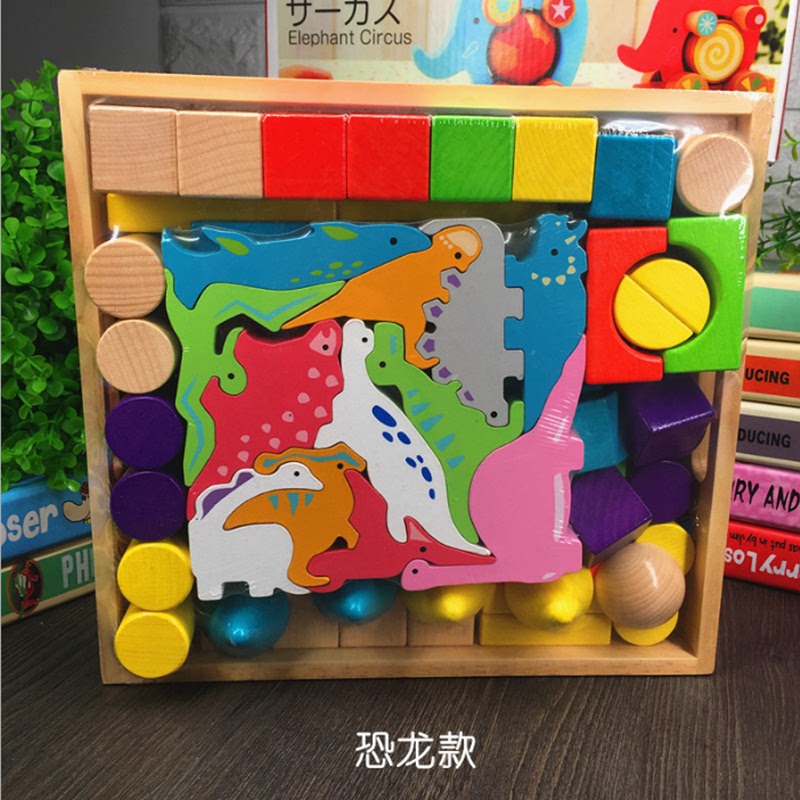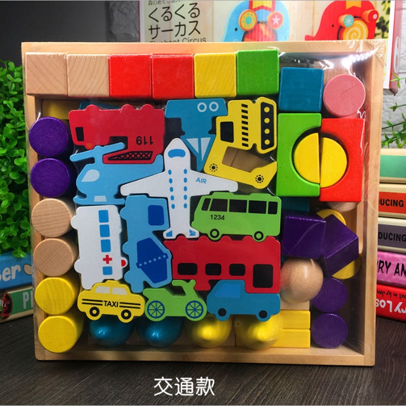 Children's wood block large beech Korea 1 - 3 - 6 years old baby animal dinosaur car spell up with a Yi toy