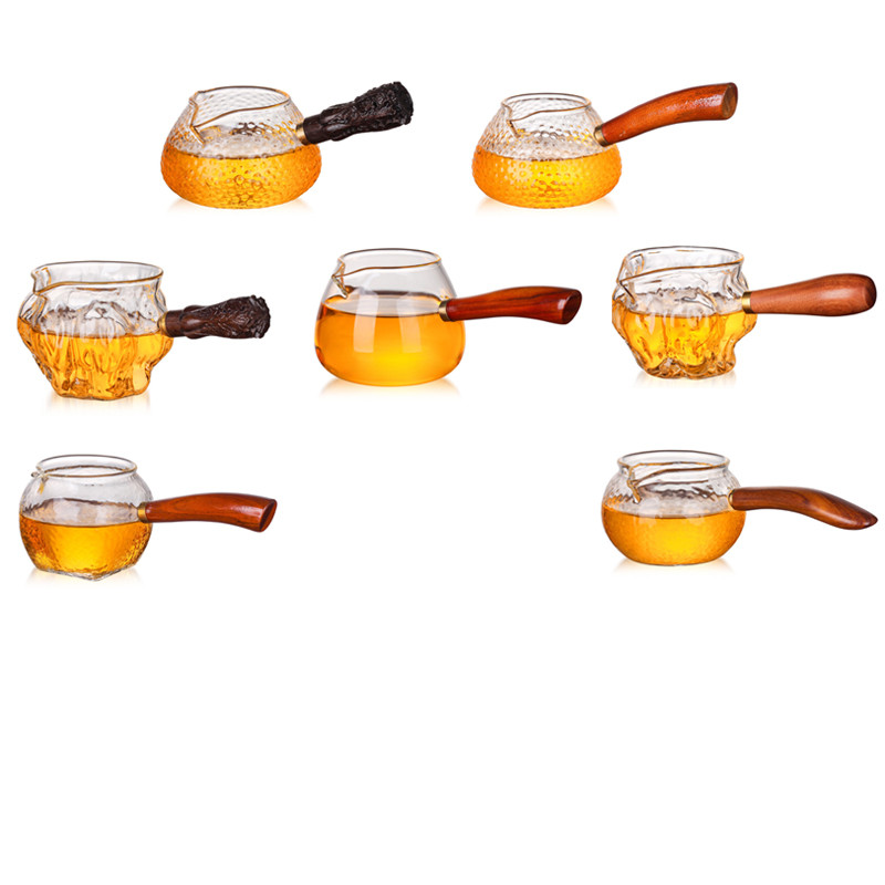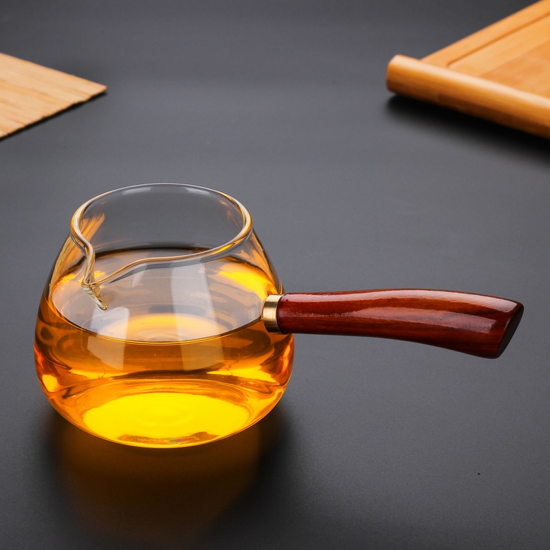 Japan-style wood to thicken the fair cup thickened heat-resistant glass tea sea handmade hammer side by hand Kung cup wooden handle kung fu sub-tea machine