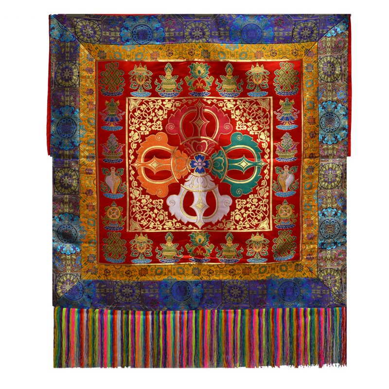 Buddha hall Monastery decoration Tibetan woven red background eight treasures cross pestle with spike Sutra table for tablecloth Dharma tablecloth