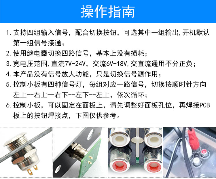 Audio input switching board Four-way audio source switching board Audio signal input switching board Switching relay