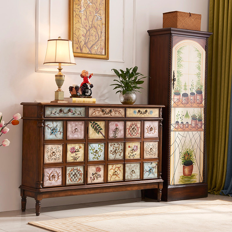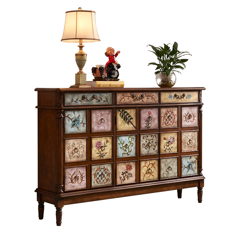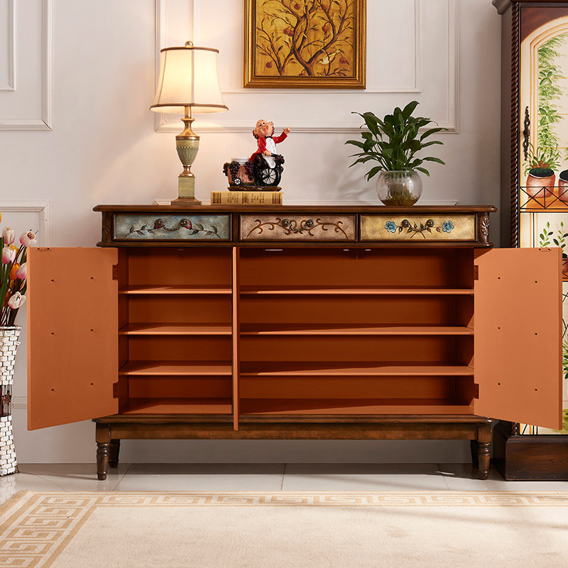 American Entrance Door Shoes Cabinet Xuanguan Cabinet Countryside Solid Wood Color Painted Retro Ultra-thin Large Capacity Door Hall Partition Cabinet Multifunction