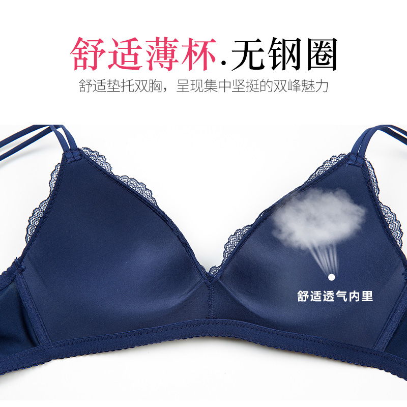 Summer ultra-thin underwear women's suit panty bra gathered without rims Summer small chest summer lace bra