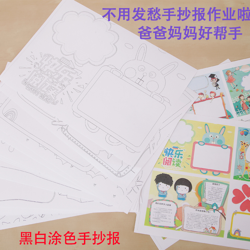 Primary school students paper hand copy newspaper tabloid blank black and white line drawing coloring coloring template direct writing template physical object