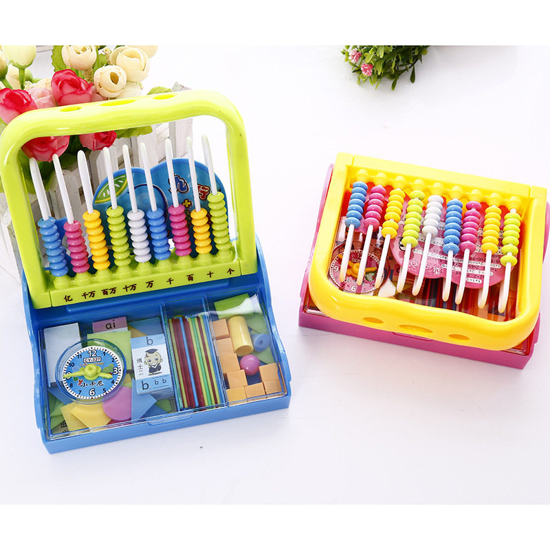 Kindergarten elementary school students computing rack operation box counting geometry piece nine-line multi-functional teaching aid box set