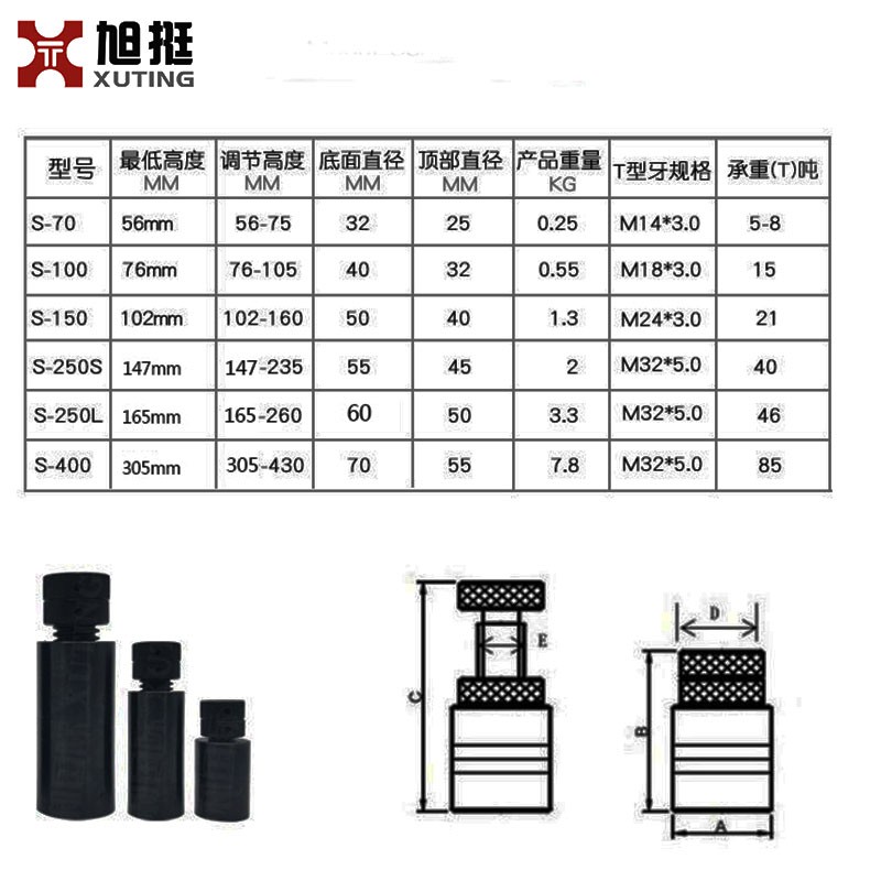 Hardened S-70 with holes can be used to adjust the height with a wrench Hardened S-100 with holes can be used to adjust the height with a wrench plus S-150 with holes can be used to adjust the height with a wrench and hardened S-250