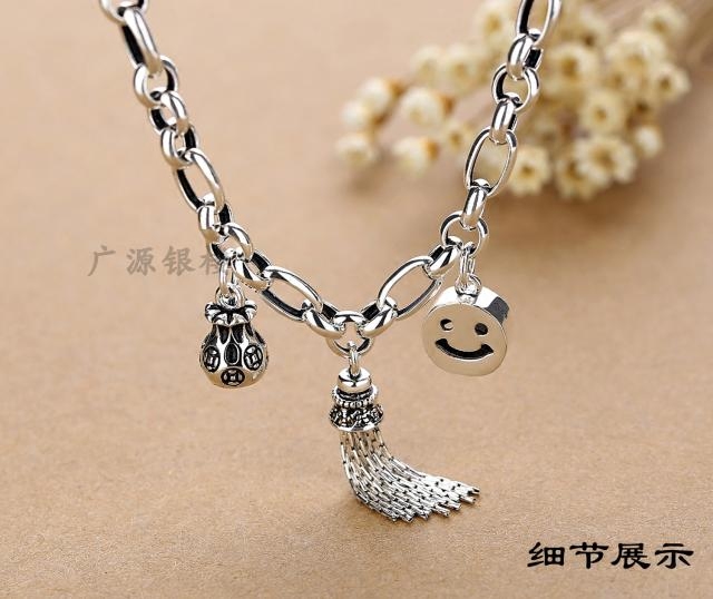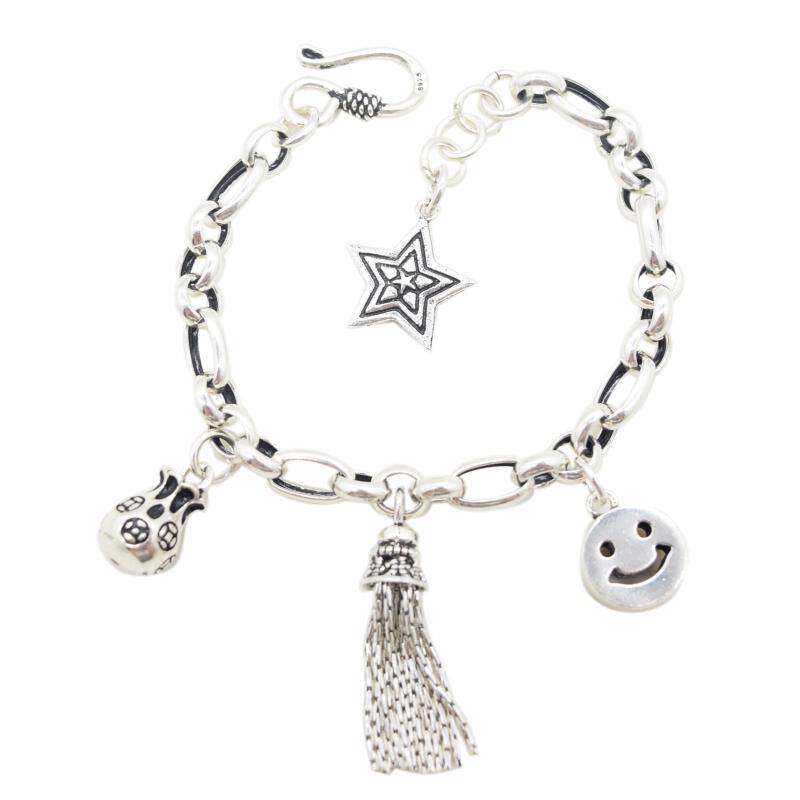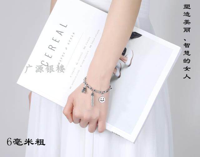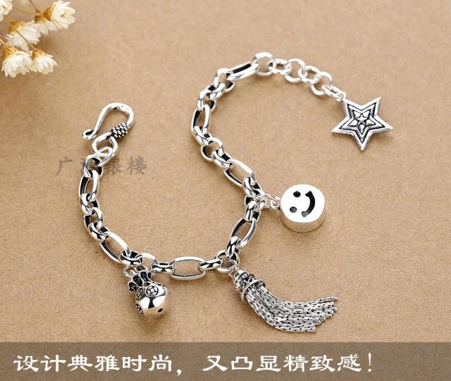 Guangyuan Yinlou 925 sterling silver hand-held female Korean version of the casual personality Mori retro Thai silver fashion smiley hand-held