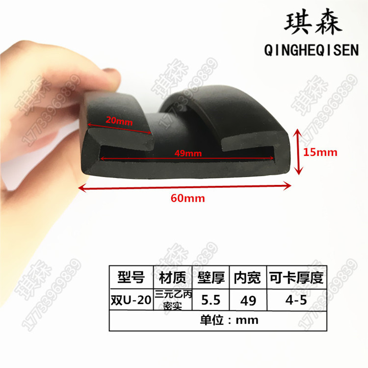 Card 1-11mm double U-type rubber seal strip dust-proof anti-collision protection decoration anti-aging bag edge sealant strip