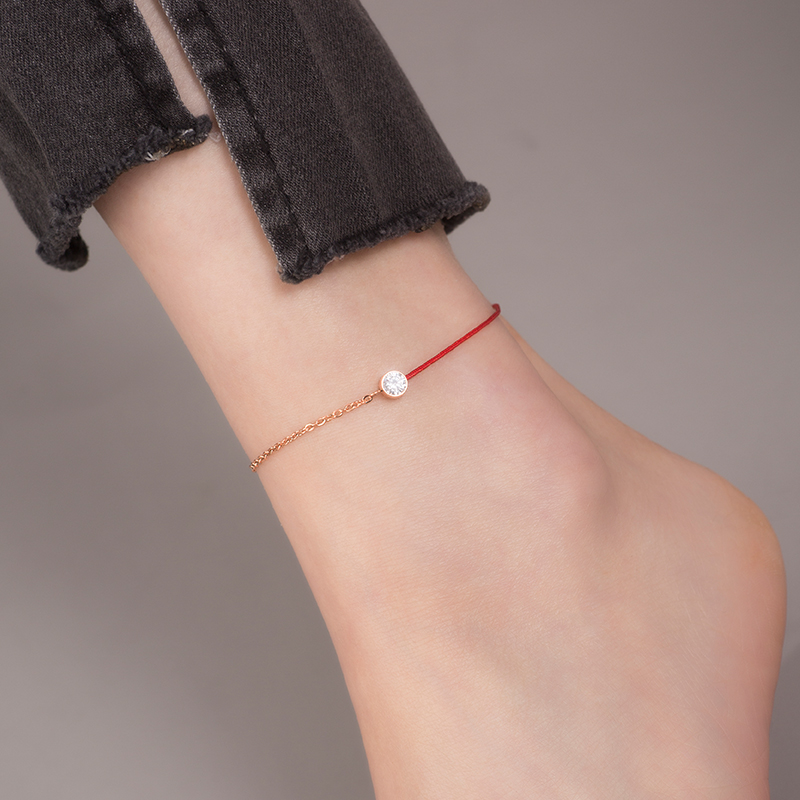 Half red rope single diamond anklet * rose gold half red rope single diamond anklet * silver half red rope single diamond anklet * 18k gold
