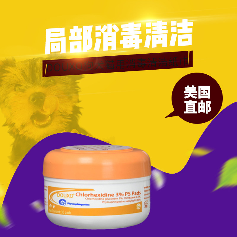 US direct mail Douxo chlorhexidine cat and dog pet disinfection cleaning wet wipes 30 pieces of sterilization to prevent infection
