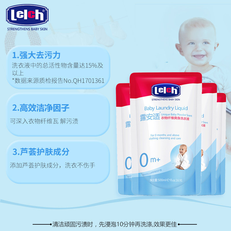 Lu Anshi baby laundry Detergent 500ml*4 packs of new baby special decontamination clothing fiber lotion refill