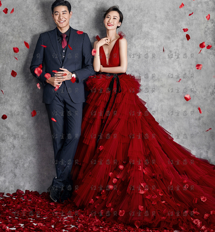 Photo Gallery Themed Clothing 2020 New Couples Photo Gown Photography Write Real Red Deep V Lead Long Trailing Wedding Dress