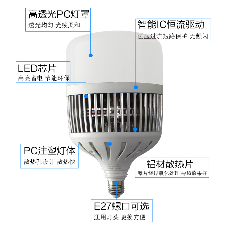 LED high power energy-saving light bulb ultra bright ball bubble light E27E40 screw mouth 50W80W100W150W factory LED light