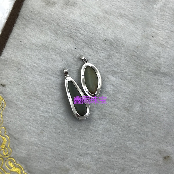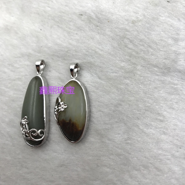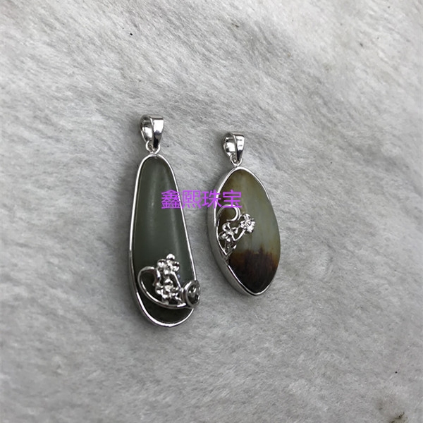 Sterling silver hand-wrapped pendant with stone inlaid with various irregular jade and Hetian jade seed material processing to cover residual cracks