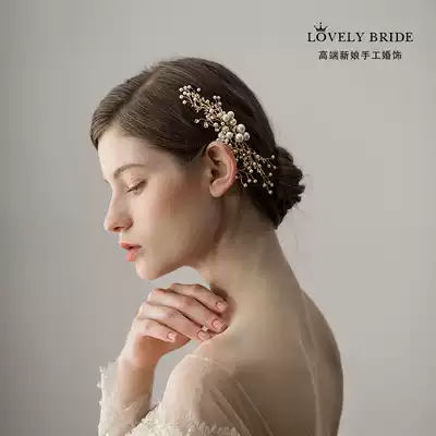European and American new handmade golden pearl Bride wedding hair headgear comb temperament beautiful elegant retro jewelry