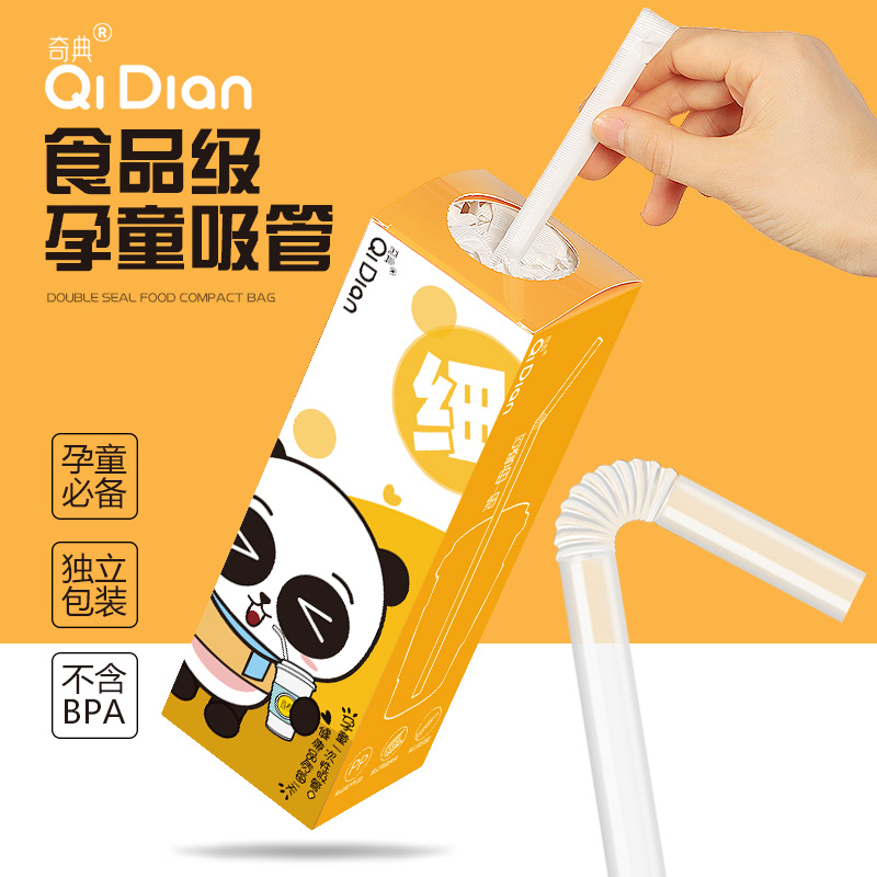 Disposable pregnant women baby children lazy mothers take out transparent drinking water can bend independent paper packaging plastic straw