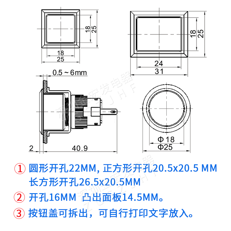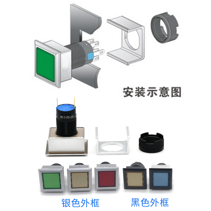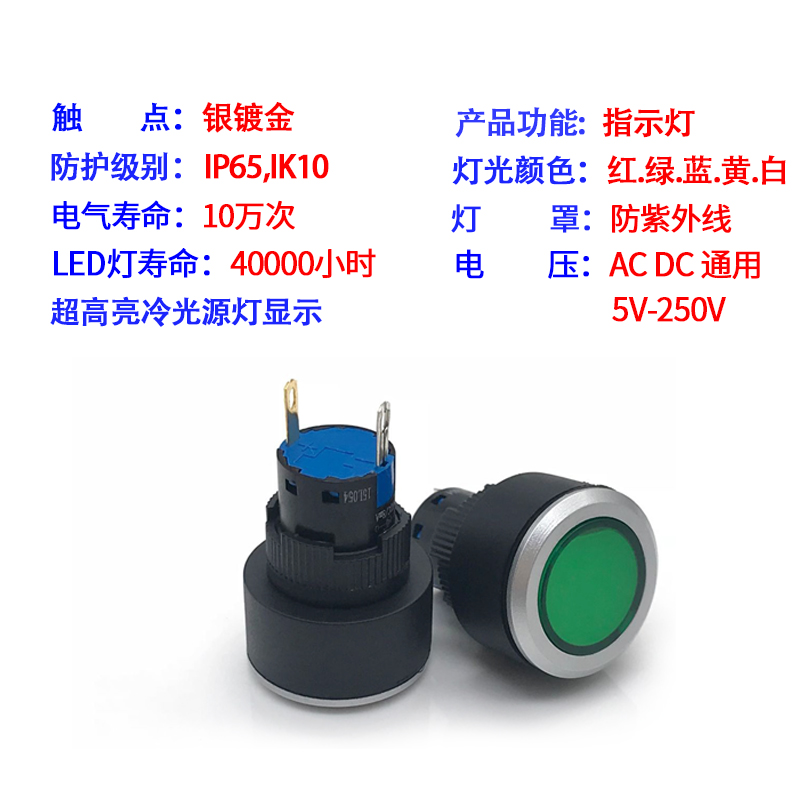 Button LED 12V 24V 220v switch signal lamp rectangular rectangular bore 27 * 21MM red green yellow